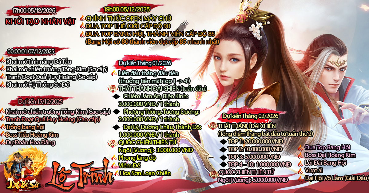 Lưu ý: Lộ trình có thể thay đổi tùy tình hình hiện tại của Server