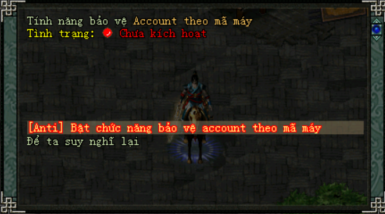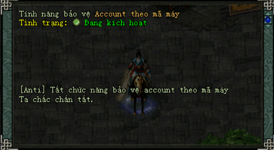 💥 Khi tính năng [Anti] đã được kích hoạt, tài khoản nhân vật đó chỉ có thể đăng nhập trên chính PC, Laptop đã đã cài đặt.