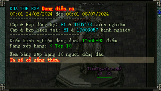 Báo danh tham gia tại NPC ĐUA TOP EXP (Tương Dương 196/201).