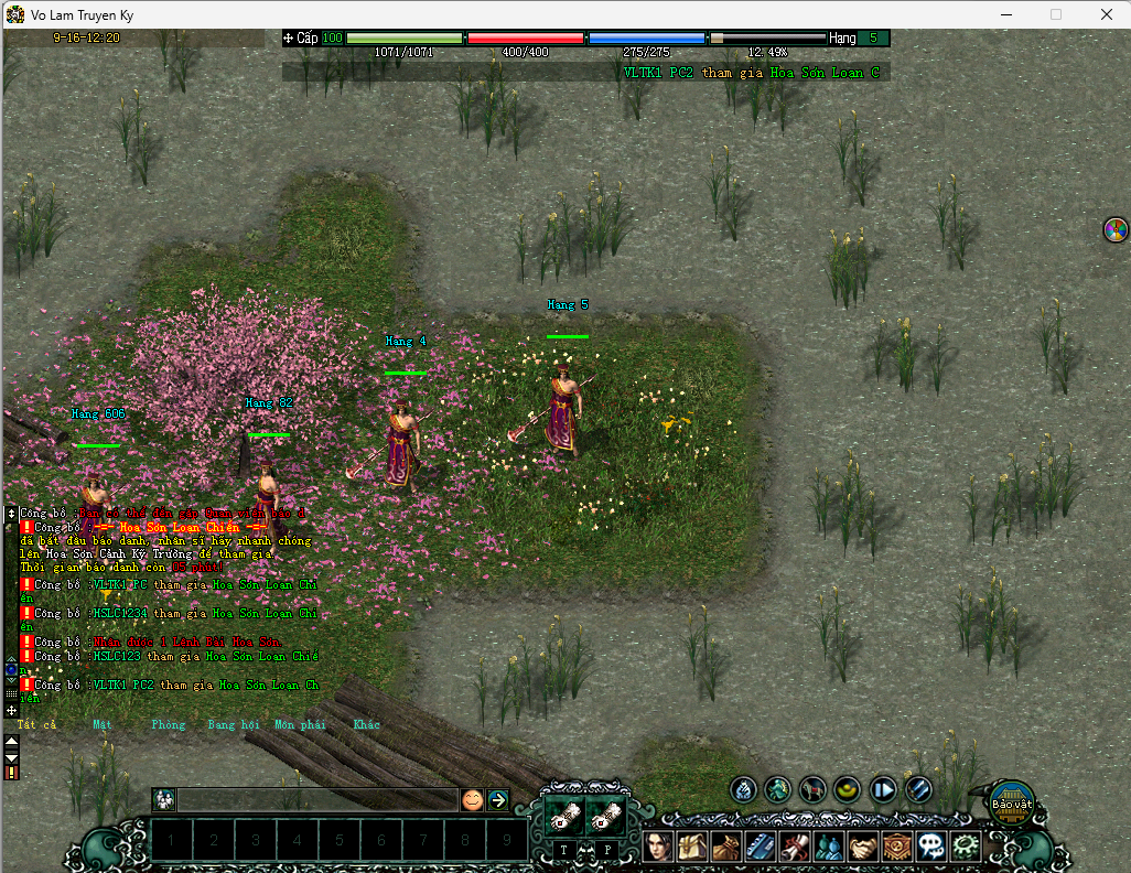 Lưu ý: Nếu không đủ 10 người tham gia thì Hoa Sơn Loạn Chiến sẽ bị hủy bỏ và mất luôn Lệnh Bài Hoa Sơn