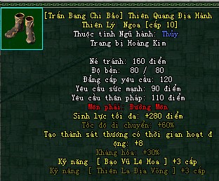 Tính chất: Xếp chồng 500/500. Được giao dịch, bày bán. Không thể ném ra. Bán cửa hàng giá 0 lượng.