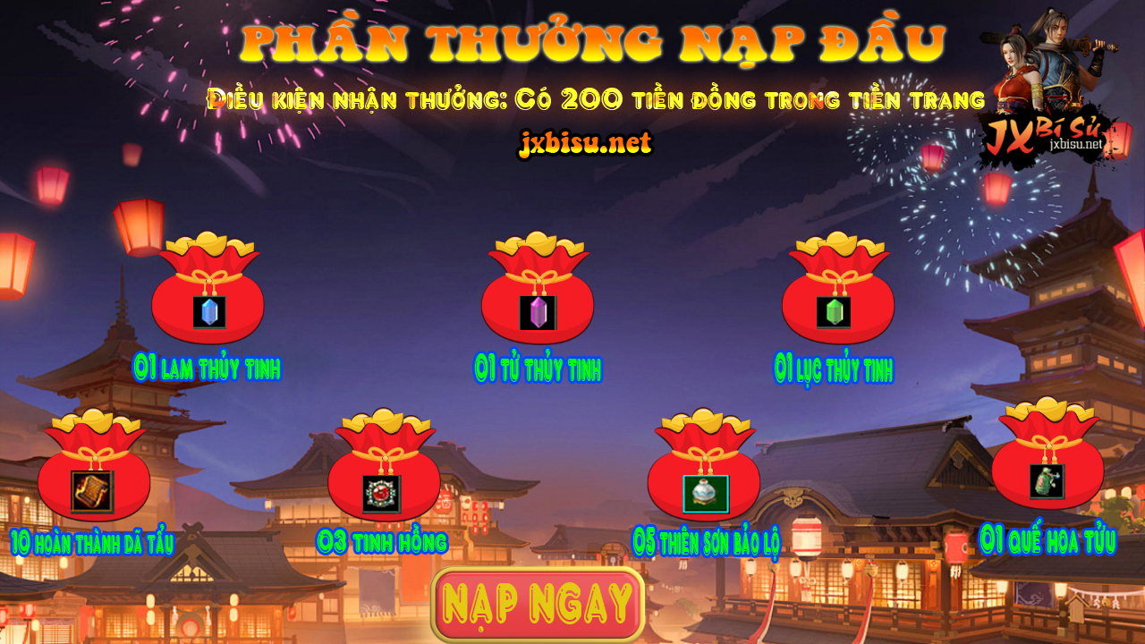 Để chúc mừng khai mở máy chủ mới và tri ân những anh em ủng hộ máy chủ, BQT gửi tặng anh em chút quà khi anh em lần đầu nạp xu tại máy chủ HOA BỈ NGẠN.